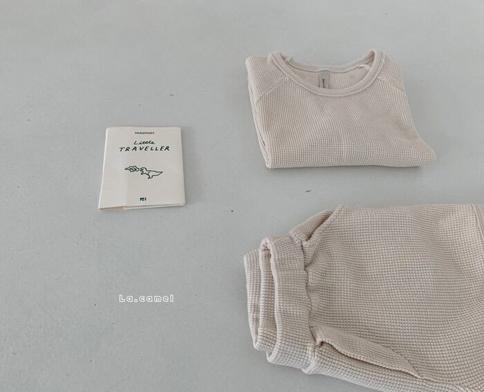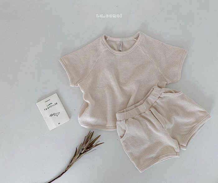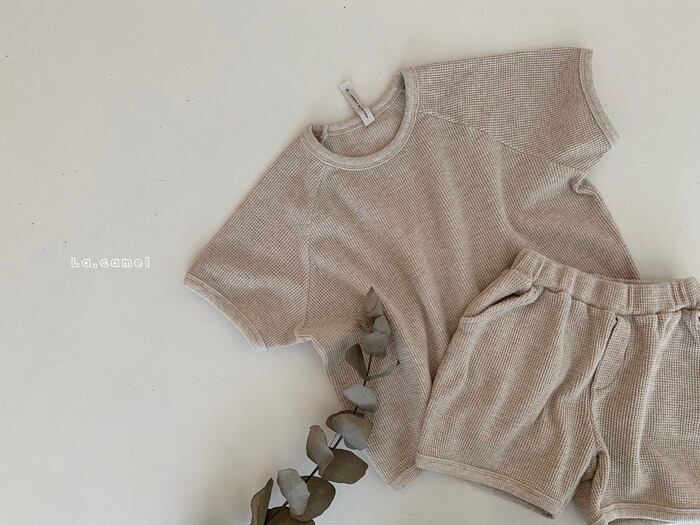 着心地の良いワッフル生地のセットアップです。ユニセックスで男の子も女の子にもおすすめ!